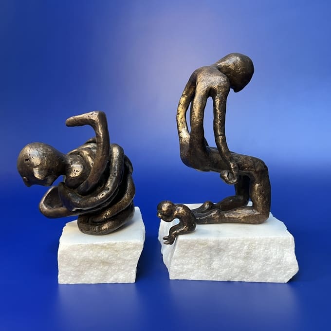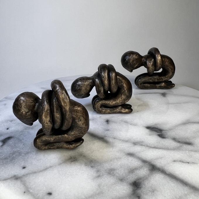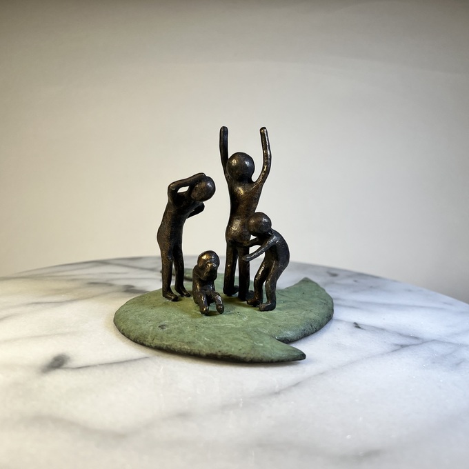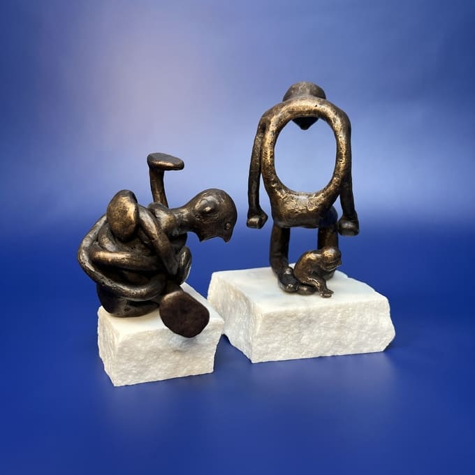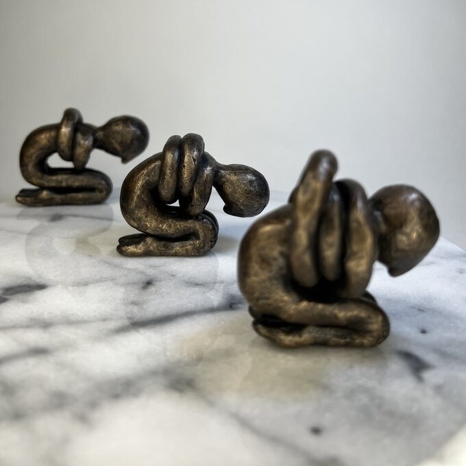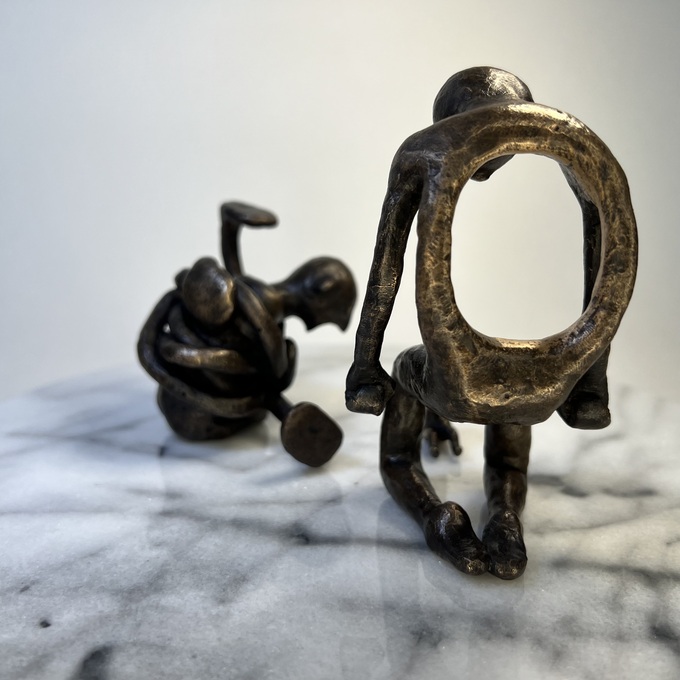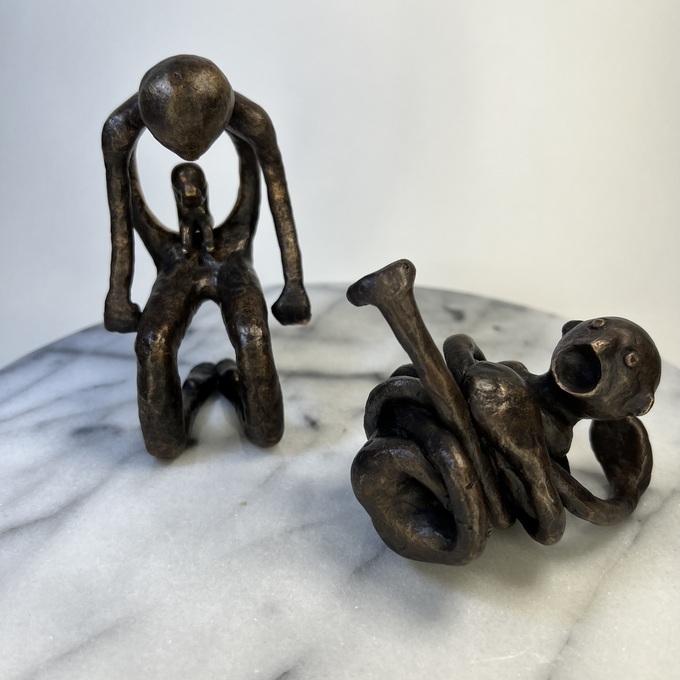 Een overzicht van alle beelden… klik op een afbeelding voor verdere info. Danseres en het Kleine Volkversie 3/7 – € 975 Hoogte: 25 en 10 cmBreedte: 16 cmGewicht: 2,3 en 0,7 kg ZoekerVerschillende patina versies – € 425 Hoogte: 29 cmBreedte: 31 cmGewicht: 1,3 kg Balanzerenversie 1/7 – € 440 Hoogte: 17 cmBreedte: 28 bij 6 cmGewicht brons: 1,07 kg Laat Losversie 1/7 – € 463 Hoogte: 11 cmBreedte: 19 bij 9 cmGewicht brons: 1,00 kg Bijna Vrijversie 1/7 – € 490 Hoogte: 24 cmBreedte: 22 bij 6 cmGewicht brons: 1,25 kg Het Gat, de Kleine en de Knoopversie 2/7 – € 360 Hoogte: 11, 3 en 9 cmBreedte: 7, 1 en 7 cmGewicht totaal: 1,25 kg Reikaard en kleine – uit de hoogteversie 1/7 – € 325 Hoogte: 30 en 3 cmBreedte: 4 en 1 cmGewicht totaal: 0,78 kg Kramp, Kramper, Krampstversie 1/7 – € 156, € 130, € 117versie 2/7 – samen € 400 Hoogte: 6, 5,5 en 6 cmLengte: 8, 7 en 6 cmGewicht totaal: 0,48 kg, 0,4 kg, 0,36 kg In de vouw verschillende versies € 217 Hoogte: 8,5 cmBreedte: 4,5 bij 6 cmGewicht totaal: 0,52 kg Reikaard en kleine – in de breedteversie 2/7 – € 287 Hoogte: 7 en 3 cmLengte: 26 en 3 cmGewicht totaal: 0,62 kg Uit de vouwverschillende versies – € 263 Hoogte: 5 cmBreedte: 12 bij 5 cmGewicht totaal: 0,63 kg Zoek Dekking – rechtsversie 1/7 – € 210 Hoogte: 7 cmBreedte: 8 bij 6 cmGewicht totaal: 0,51 kg Verloren of Gevonden versie 2/7 – € 315 Hoogte: 7 cmBreedte: 8 bij 6 cmGewicht totaal: 0,97 kg Ballast, Troost of Houvast met groene en rode jaspis edelsteengereserveerd Hoogte: 20 cm (geheel)Breedte: 26 bij 10 cmGewicht brons: 1,05 kg Zoek Dekking – linksgereserveerd Hoogte: 7 cmBreedte: 8 bij 6 cmGewicht totaal: 0,53 kg Danseres en het Kleine Volkversie 2/7 – Verkocht Hoogte: 25 en 10 cmBreedte: 16 cmGewicht: 2,3 en 0,7 kg